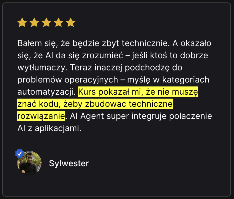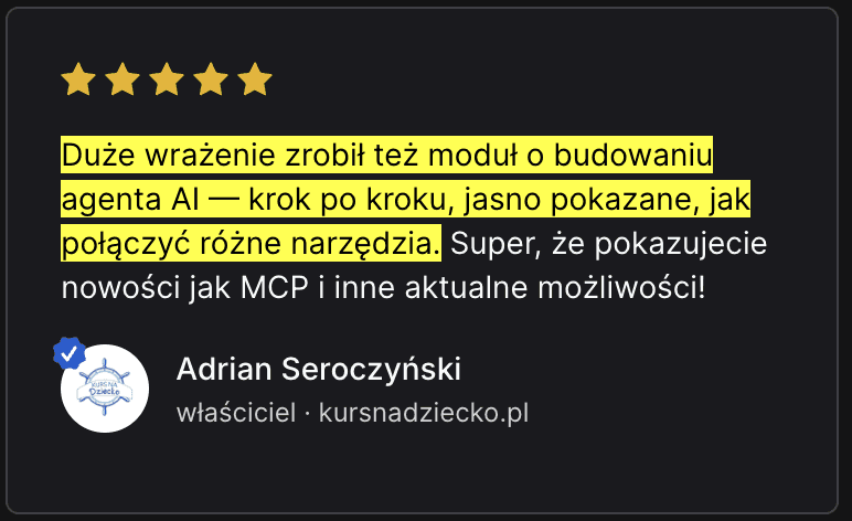 👉 po świadome wykorzystywanie agentów AI w prawdziwych, komercyjnych projektach