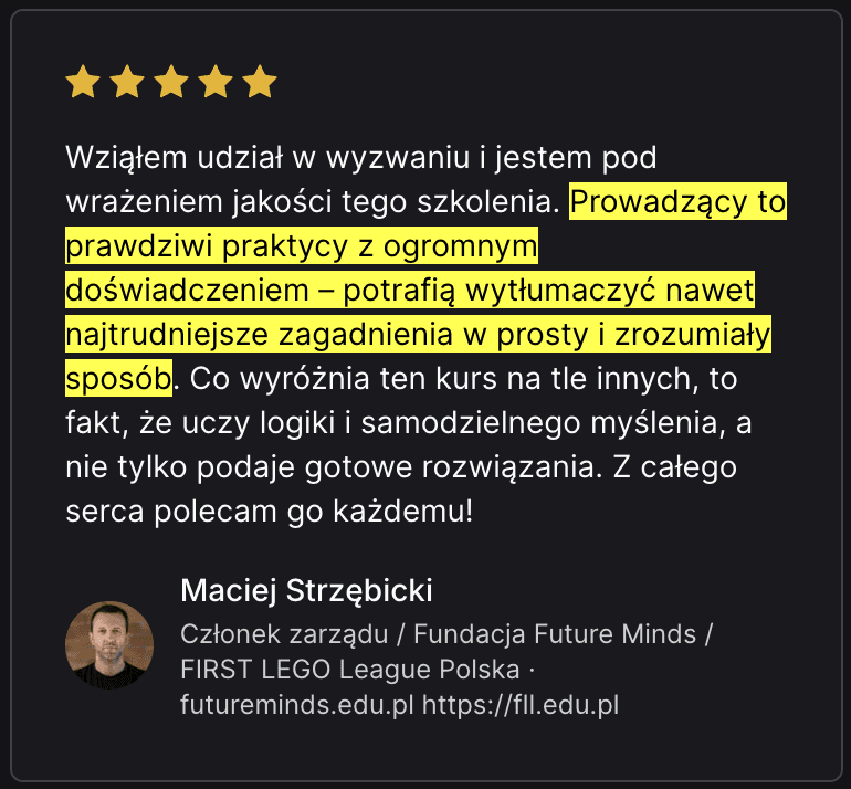✔ Najbardziej praktyczne szkolenie na rynku - z certyfikatem ukończenia wyzwania